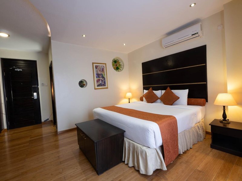 Vaše ubytovanie: Izby majú kuchyňu a kúpeľňu a klimatizácia zabezpečuje príjemnú klímu. Každá izba má manželskú posteľ, trezor a písací stôl. K dispozícii je aj chladnička a príslušenstvo na prípravu čaju/kávy. K dispozícii je žehliaca súprava a lis na nohavice. Pre vaše pohodlie je k dispozícii telefón, TV so satelitným/káblovým príjmom a Wi-Fi pripojenie. K dispozícii sú aj papuče. Kúpeľne sú vybavené sprchovacím kútom a vaňou. Hostia majú k dispozícii aj bezplatné toaletné potreby a výber uterákov. K dispozícii sú bezbariérové izby s bezbariérovou kúpeľňou. Hotel ponúka rodinné izby a nefajčiarske izby.