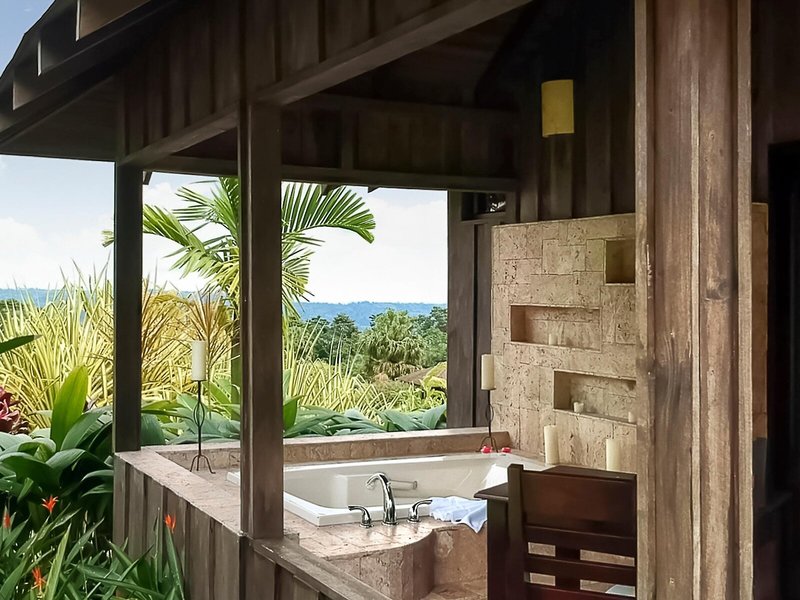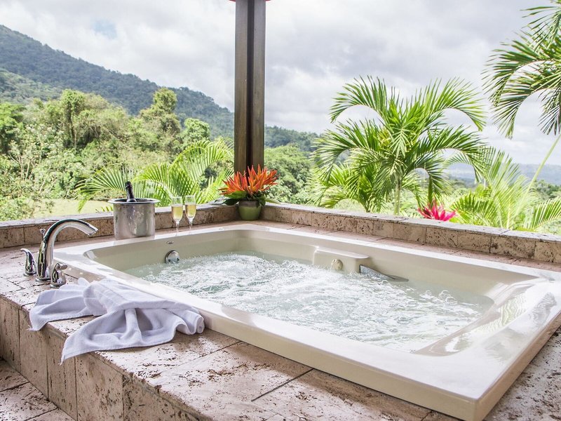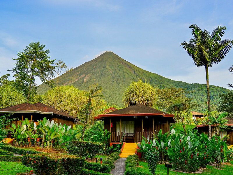 Lage & Umgebung Das Hotel am Fuße des Vulkans Arenal befindet sich rund 4 km von La Fortuna entfernt. Die Villen und Bungalows liegen eingebettet in ein rund 150 ha großes Anwesen mit tropischen Waldungen, ein wundervolles Naturparadies mit artenreicher Tier- und Pflanzenwelt.