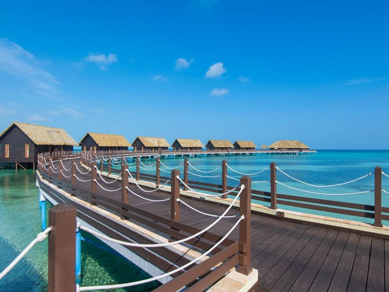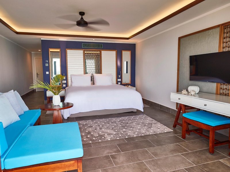 - Deluxe Ocean Front (DZM2), Doppelzimmer, Nichtraucherzimmer, im Hauptgebäude, Meerseite, Meerblick, ca. 62 m², Gesamtanzahl der Räume in diesem Zimmertyp: 1, Aufteilung wie folgt: 1 Schlafzimmer, Babybett: ohne Gebühr, Anfrage notwendig, Moskitonetz, Klimaanlage: individuell regelbar, kalt, Fußboden: Fliesenboden, Safe: ohne Gebühr, Deckenventilator, Sitzecke, Sofa, Schreibtisch, Bügeleisen, Bügelbrett, Minibar: gegen Gebühr, Softdrinks: gegen Gebühr, Wasser: gegen Gebühr, alkoholische Getränke: gegen Gebühr, Snacks: gegen Gebühr, Minibarauffüllung: täglich 10:00 Uhr - 11:00 Uhr, Telefon, Internet: WLAN/WiFi: ohne Gebühr, Fernseher: Flatscreen, Sat-TV, Kabel-TV, Reinigungsservice, separate Dusche, Regendusche, Badewanne im Zimmer, Bademantel: ohne Gebühr, Bad durch Glaswand getrennt, Föhn, Kosmetikspiegel, Balkon: mit Liegestühlen, mit Sitzgelegenheit, Nebenkosten: Strom: ohne Gebühr, Endreinigung: ohne Gebühr, Wasser: ohne Gebühr