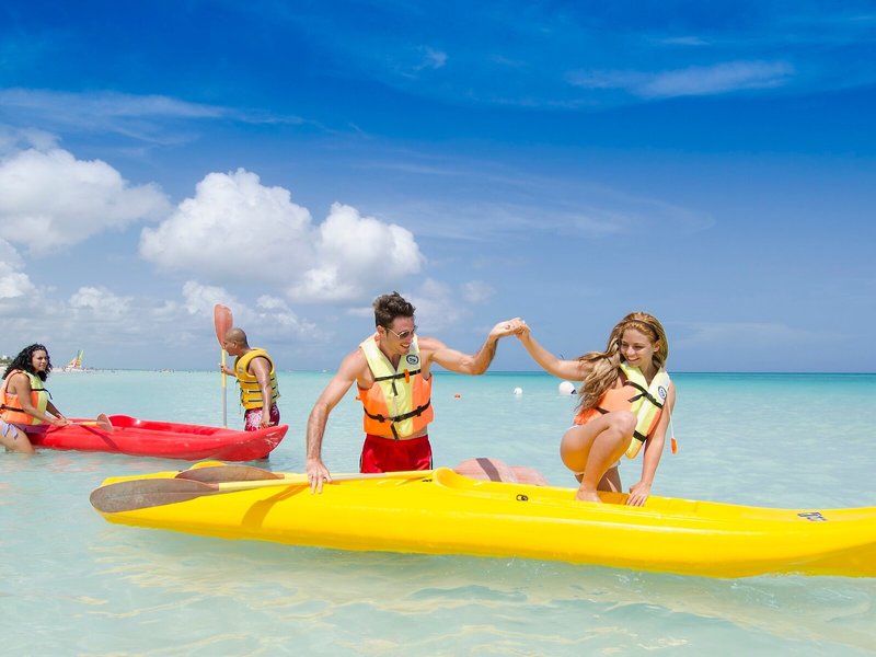 Sport & Fitness: Belebende Erfrischung garantiert die Außenpoolanlage. Ein Whirlpool lockt zur Muskelentspannung und eine Pool-/Snackbar zur Stärkung zwischendurch. Auf der Sonnenterrasse mit Liegestühlen und Schirmen lässt sich der Urlaub genießen. Das Resort bietet ein umfangreiches Outdoor-Sportprogramm mit Radfahren/Mountainbiking, Tennis, Beachvolleyball, Volleyball, Basketball und Golfen. Eine Vielzahl an Sportarten steht zur Auswahl, darunter Wassersportmöglichkeiten wie Wasserskifahren, Windsurfen, Tretbootfahren, Bananenbootfahren, Kanufahren, Segeln, Katamaranfahren, Kajakfahren und Tauchen und gegen Gebühr Schnorcheln. Die Unterbringung bietet Sportfreunden auch viele Aktivitäten im Innenbereich, nämlich ein Fitnessstudio, Tischtennis, Badminton, Billard, Squash und Aerobic. Im Resort werden verschiedene Wellnessangebote wie Spa, Sauna, Schönheitssalon und Massage-Anwendungen offeriert. Ein Animationsprogramm, eine Disco und ein Nachtclub sorgen für besten Freizeitspaß.