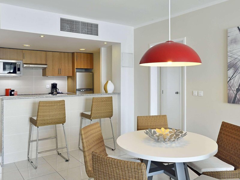 So wohnen Sie: Die Zimmer sind mit einem Wohnbereich, einer Küche und einem Badezimmer ausgestattet, außerdem sorgen eine Klimaanlage und ein Ventilator für gutes Raumklima. In den meisten Zimmern zählt ein Balkon zum Standard. Die Zimmer verfügen über ein Kingsizebett und ein Sofabett. Es sind separate Schlafzimmer vorhanden. Auch Baby- und Zustellbetten können zur Verfügung gestellt werden. Außerdem sind ein Safe und eine Minibar verfügbar. In der Kochnische befinden sich eine Mikrowelle, eine Tee-/Kaffeemaschine und ein Backofen. Ein Bügelset ist für den zusätzlichen Komfort der Gäste verfügbar. Darüber hinaus sind ein Telefon, ein TV-Gerät, ein Radio und WiFi (ohne Gebühr) vorhanden. Im Badezimmer, mit einer Dusche und einer Badewanne ausgestattet, stehen für die Gäste ein Haartrockner und Bademäntel bereit. Außerdem sind rollstuhlgerechte Zimmer mit barrierefreiem Badezimmer buchbar. Das Haus bietet Raucherzimmer.