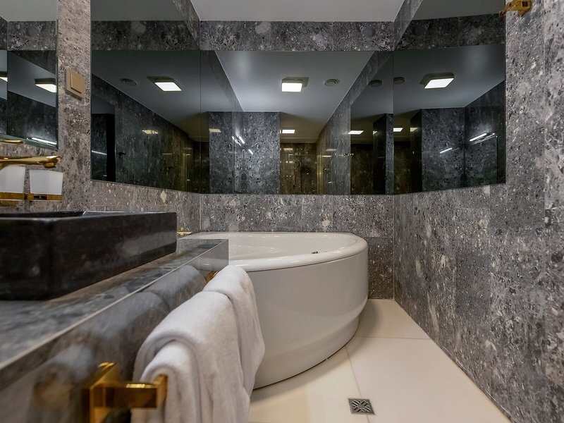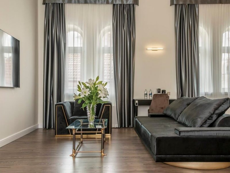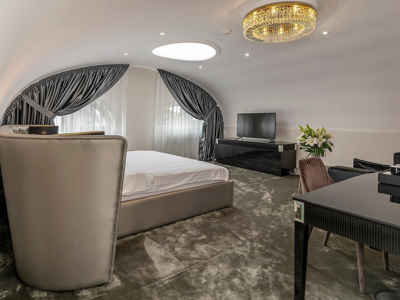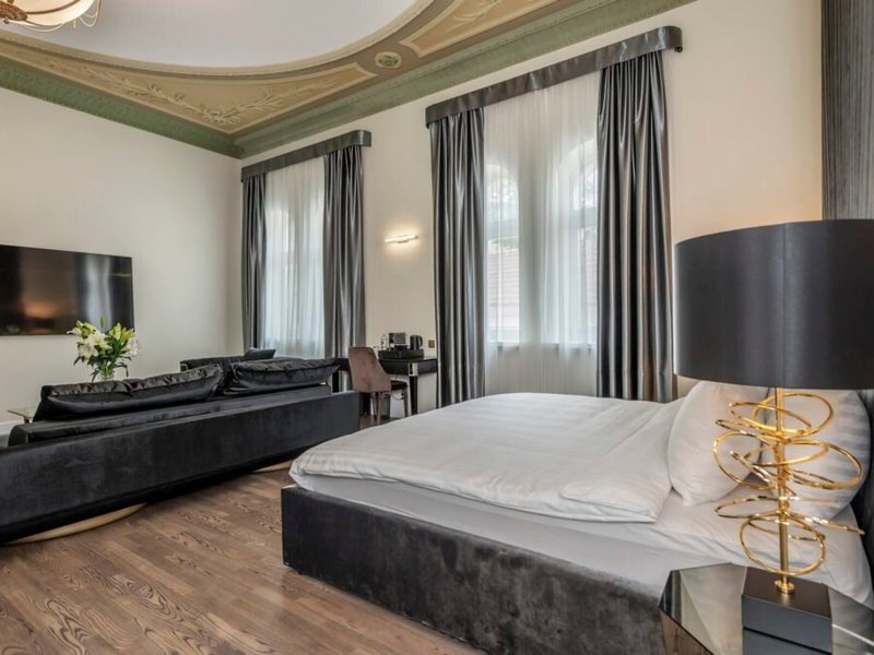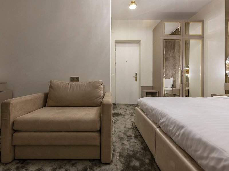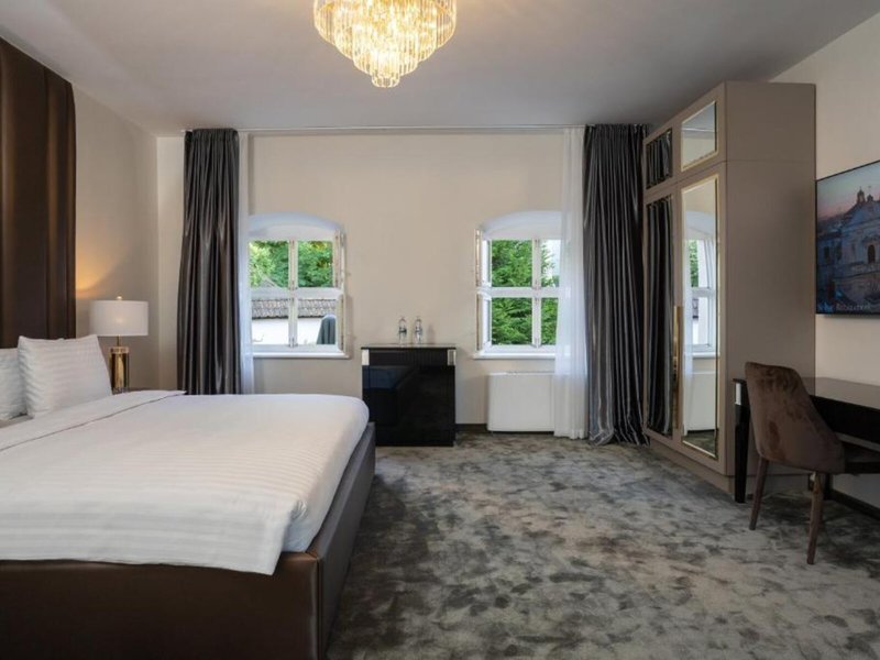 Vaše ubytovanie: Izby sú vybavené klimatizáciou a individuálne nastaviteľným kúrením. Balkón je štandardným vybavením väčšiny izieb. Izby s kobercami sú vybavené manželskou posteľou veľkosti king a rozkladacou pohovkou. Prístelky je možné vyžiadať. K dispozícii je aj trezor, minibar a písací stôl. Štandardným vybavením je aj zariadenie na prípravu kávy/čaju. K dispozícii je aj žehliaca súprava a lis na nohavice. Pre optimálne pohodlie je k dispozícii telefón s priamou voľbou, TV so satelitným/káblovým príjmom, napájací adaptér a Wi-Fi pripojenie na internet (bezplatné). K vybaveniu izby patria papuče. Kúpeľňa je vybavená sprchovacím kútom a vaňou, sušičom vlasov a županmi. Ako špeciálne vybavenie si hostia môžu vychutnať kozmetické produkty a výber uterákov v kúpeľniach. Je možné si rezervovať izby prístupné pre vozíčkarov. Dom ponúka rodinné a fajčiarske izby.