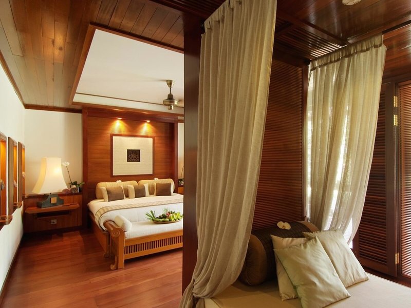 - Serambi Room (DZX2), Doppelzimmer, Nichtraucherzimmer, Gartenseite, Gartenblick, ca. 55 m², Gesamtanzahl der Räume in diesem Zimmertyp: 1, Aufteilung wie folgt: kombiniertes Wohn-/Schlafzimmer, 1 King Size Bett, 1 Schlafsofa, Babybett: ohne Gebühr, Anfrage notwendig, Klimaanlage: ohne Gebühr, individuell regelbar, kalt, Fußboden: Fliesenboden, Parkett, Safe: ohne Gebühr, Deckenventilator, Schreibtisch, Bügeleisen, Bügelbrett, Kaffeemaschine, Minibar: gegen Gebühr, Softdrinks: gegen Gebühr, Snacks: gegen Gebühr, Minibarauffüllung: täglich, Telefon, Internet: WLAN/WiFi: ohne Gebühr, Fernseher: im Schlafzimmer, Sat-TV, Reinigungsservice: täglich, ohne Gebühr, separate Dusche, Badewanne, separates WC, Föhn, Terrasse: mit Sitzgelegenheit, Veranda