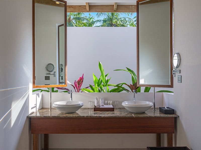 Platinum Beach Bungalow (BUP, ca. 70 qm), Klimaanlage, Ventilator, Minibar (gegen Gebühr), Kaffee-/Teezubereiter, WLAN, Safe, TV. Dusche, WC, Föhn. Terrasse mit Meerblick und direktem Zugang zum Strand. Max. 3E