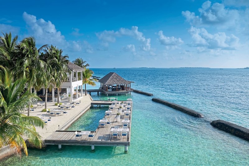 - All Inclusive Plus: Frühstück (Buffet), Mittagessen (Buffet oder à la carte), Abendessen (Buffet oder à la carte), Getränke kostenfrei (Softdrinks, Kaffee/Tee, Bier, Säfte, Hauswein, Cocktails, Spirituosen, Wasser), Weihnachtsdinner, Silvesterdinner, Dine-around, 2 Ausflüge nach Wahl (Fahrt mit dem Glasbodenboot, Besuch von Malé, Sonnenuntergangsfahrt) ab 7 Nächten Aufenthalt, Ermäßigung auf In-Villa-Dining, 15 % Ermäßigung auf ausgewählte Spa-Behandlungen, Wäscheservice (bis zu 10 Wäschestücke für jeweils 4 Übernachtungen), Kajak und Stand-Up-Paddling eine Stunde pro Zimmer/Tag sowie 10 % Ermäßigung auf ausgewählte Wassersportaktivitäten