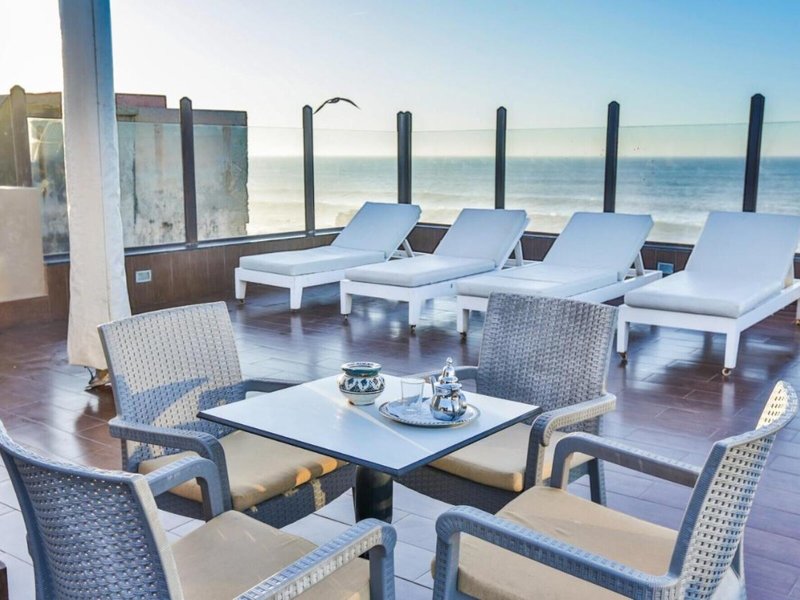 Poloha a okolie: Hotel sa nachádza na okraji Mediny v štvrti Sandillon, pomenovanej po staviteľovi prvého veterného mlyna v Essaouire. Nachádza sa hneď vedľa zálivu Sqala a hradných hradieb Essaouiry, priamo pri mori. Reštaurácie a obchody sú veľmi blízko hotela a pláž je vzdialená len asi 15 minút chôdze.