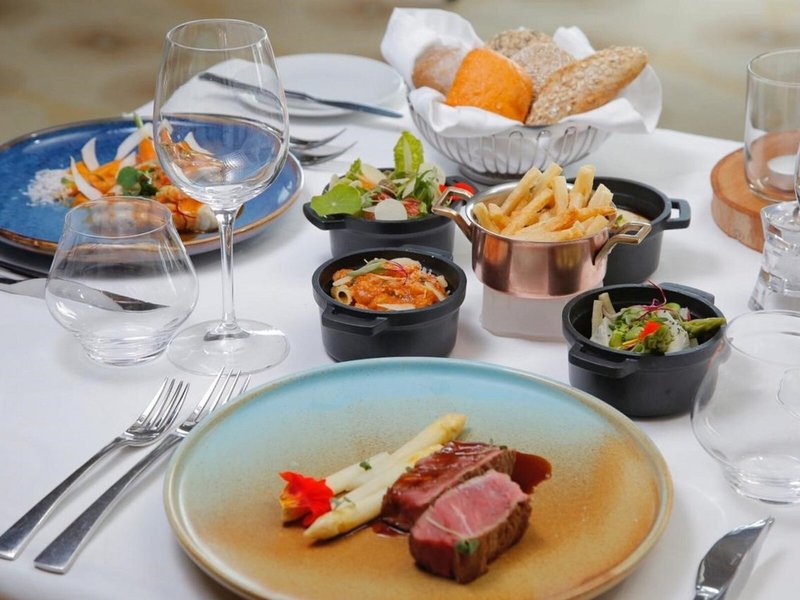 Jedlo a pitie: K stravovacím zariadeniam patrí jedáleň, kaviareň a bar V nefajčiarskej reštaurácii s oddeleným priestorom pre fajčiarov sa podávajú kulinárske špeciality. Dom ponúka rezervovateľné stravovacie služby vrátane prenocovania vrátane raňajok, polpenzie, plnej penzie a all inclusive. Kontinentálne raňajky formou bufetu sú zárukou dobrého začiatku dňa. V čase obeda a večer je na výber medzi bufetom, à la carte a menu. Na požiadanie je možné pripraviť diétne jedlá, bezlepkové jedlá a vegetariánske jedlá. Hotel ponúka aj špeciálne možnosti stravovania. Špeciálnou atrakciou je show cooking. Ubytovanie ponúka široký sortiment alkoholických a nealkoholických nápojov.