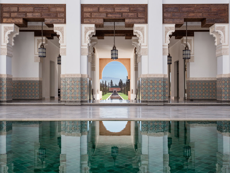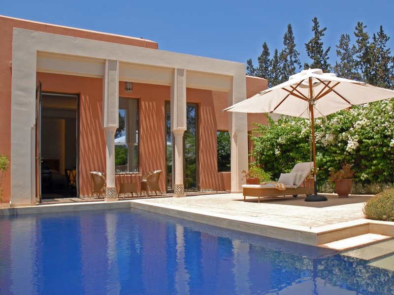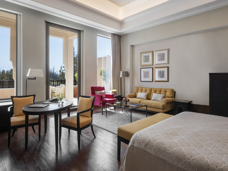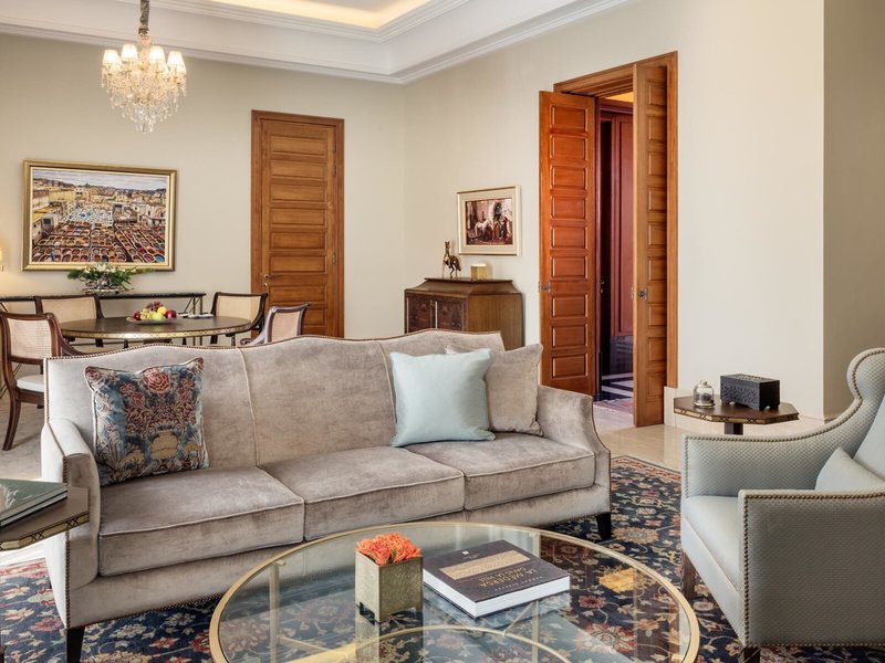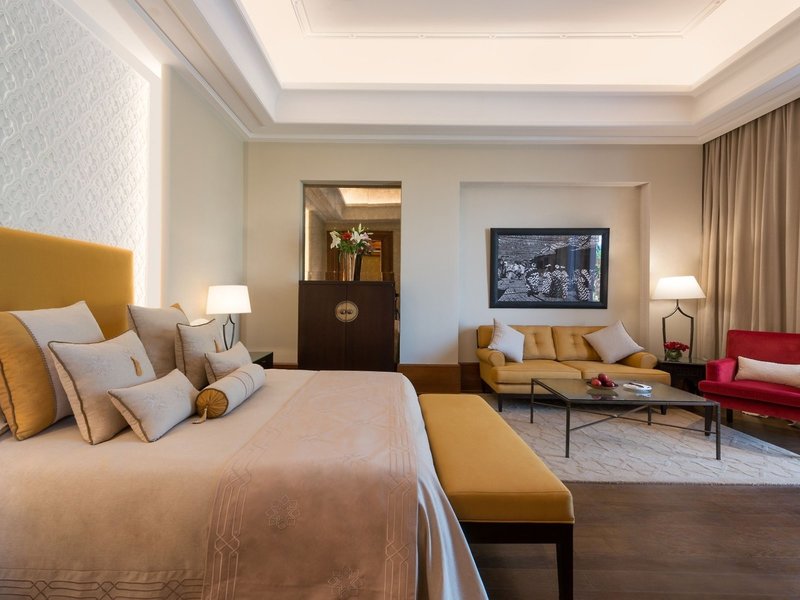 - Deluxe Room (DZX1), Doppelzimmer, Nichtraucherzimmer, im Hauptgebäude, Gartenblick, Blick auf majestic views of the snow-capped Atlas, ca. 70 m², letzte Komplettrenovierung 2019, letzte Teilrenovierung 2019, Gesamtanzahl der Räume in diesem Zimmertyp: 1, Aufteilung wie folgt: kombiniertes Wohn-/Schlafzimmer, 1 King Size Bett, Klimaanlage, Heizung, Fußboden: Parkett, Safe: ohne Gebühr, Sofa, Schreibtisch, Nespressomaschine, Kaffee-/Teezubereiter, Minibar: gegen Gebühr, Telefon, Internet: WLAN/WiFi: ohne Gebühr, Fernseher: Flatscreen, im Schlafzimmer, Sat-TV, Roomservice: gegen Gebühr, Reinigungsservice: ohne Gebühr, separate Dusche, Badewanne, separates WC, Bademantel: ohne Gebühr, Slipper: ohne Gebühr, Föhn, Kosmetikspiegel, Terrasse: mit Sitzgelegenheit