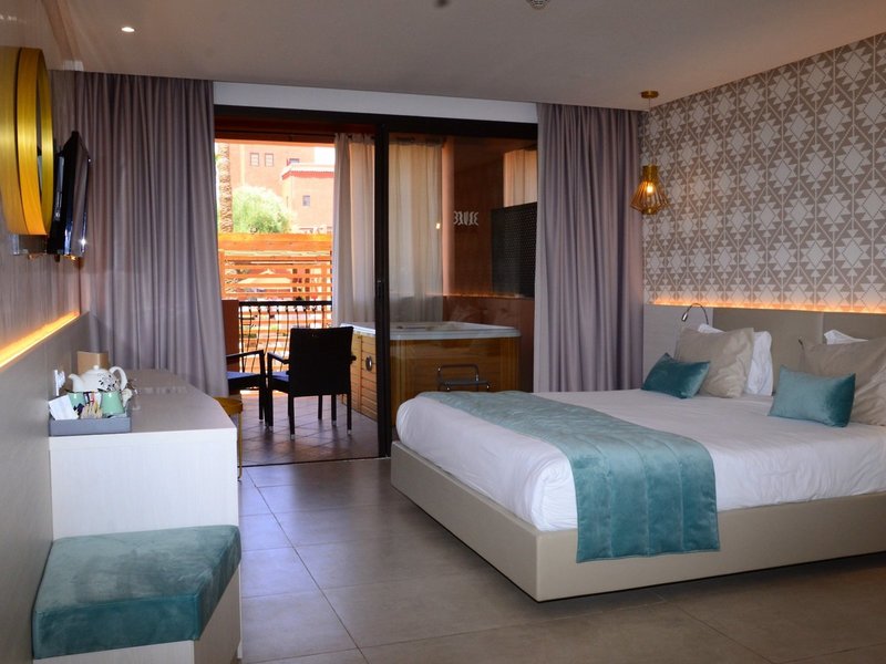 - Dvojlôžková izba s výhľadom na bazén (DZX4), dvojlôžková izba, v hlavnej budove, výhľad na bazén, výhľad do záhrady, výhľad na mešitu Koutoubia, cca 20 m², posledná čiastočná rekonštrukcia v roku 2014, celkový počet izieb v tomto type izby: 1, dispozičné riešenie nasledovne: kombinovaná obývačka/spálňa, 1 manželská posteľ, klimatizácia: zadarmo, individuálne nastaviteľná, centrálne ovládaná, kúrenie: individuálne nastaviteľná, centrálne ovládaná, podlaha: dlažba, trezor: zadarmo, kávovar/čajník, rýchlovarná kanvica, minibar: zadarmo, nealko nápoje: zadarmo, Voda: zadarmo, telefón, Internet: WLAN/WiFi: zadarmo, TV: plochá obrazovka, satelitná TV, upratovanie: denne, zadarmo, sprcha, WC, župan: zadarmo, papuče: zadarmo, fén, kozmetické zrkadlo, balkón: s posedením