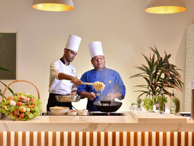 - Hauptrestaurant „Cotomili Restaurant“: Küche: chinesisch, international, indisch, italienisch, mediterran, regional, Fisch/Meeresfrüchte, Grillgerichte, Babynahrung: ohne Gebühr, Anfrage & Reservierung notwendig, glutenfreie Gerichte: ohne Gebühr, Anfrage & Reservierung notwendig, Kindermenü: gegen Gebühr, vegetarische Gerichte: gegen Gebühr, Buffet, à la carte, ohne Gebühr, täglich 07:00 Uhr - 10:00 Uhr und 19:30 Uhr - 22:00 Uhr, mit Terrasse, Raucherbereich, angemessene Kleidung erwünscht