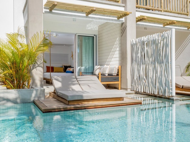 - Couple Swim-up (DZX4), Doppelzimmer, Nichtraucherzimmer, Mindestalter im Zimmer: 18 Jahre, Poolseite, Poolblick, Gartenblick, Blick auf direkter Zugang zum Pool, ca. 31 m², letzte Komplettrenovierung 2021, Gesamtanzahl der Räume in diesem Zimmertyp: 1, Aufteilung wie folgt: kombiniertes Wohn-/Schlafzimmer, 1 King Size Bett, Klimaanlage: ohne Gebühr, individuell regelbar, kalt, Fußboden: Fliesenboden, Safe: ohne Gebühr, Sofa, Kühlschrank: ohne Gebühr, Kaffee-/Teezubereiter, Wasserkocher, Telefon, Internet: WLAN/WiFi: ohne Gebühr, Reinigungsservice: täglich, ohne Gebühr, Dusche, separates WC, Föhn, Terrasse: mit Liegen, mit direktem Poolzugang