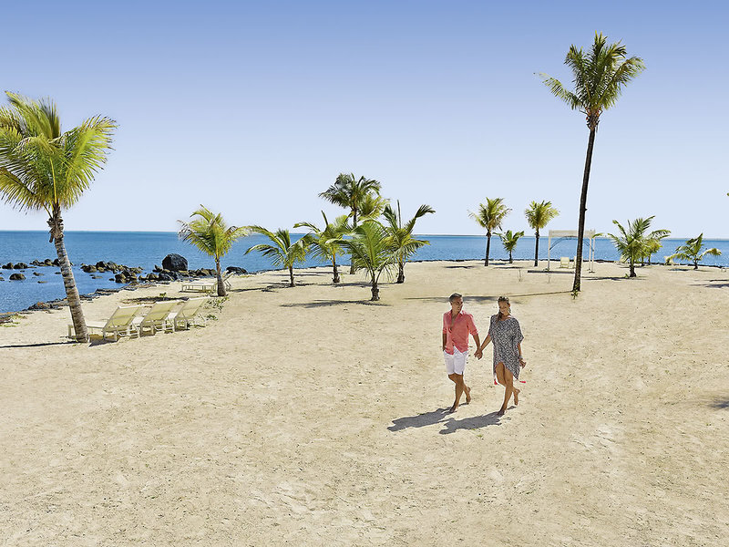 Lage: Direkt am langen Sandstrand in Roches Noires an der Nordküste. Vor dem Strand lagern eine kleine Strandinsel und eine Relaxplattform im Meer (Bootstransfers inkl.).