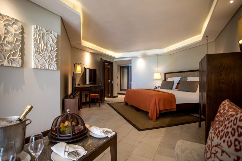 Juniorsuite: Die ca. 60m² großen Juniorsuiten sind hell und modern eingerichtet. Sie verfügen über ein Kingsizebett, Bad mit Badewanne sowie separater Dusche und WC, Klimaanlage, Safe, Wi-Fi, begehbarer Kleiderschrank, Direktwahltelefon, Sat.-TV, Kaffee-/Teezubereiter, Minibar (alkoholfreie Getränke sowie 2x Bier pro Tag inklusive), ein Sofa sowie einen Balkon oder Terrasse mit Meerblick.