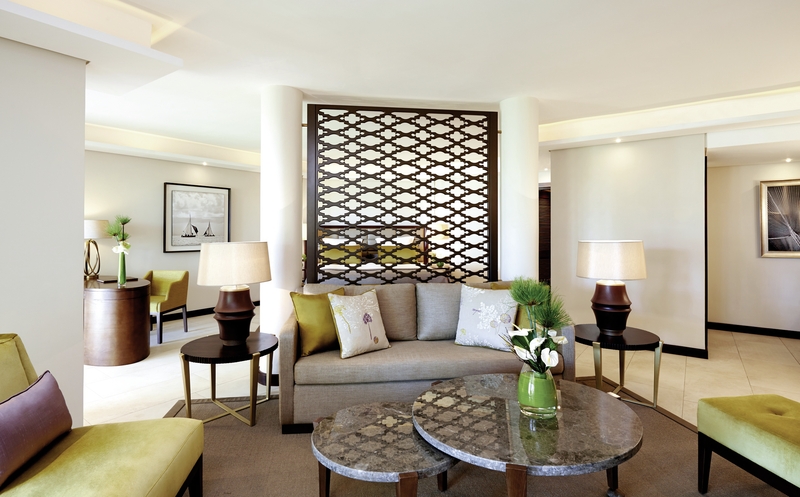 Palm Suite (10) ca. 105 qm: Ausstattung wie Junior Suite, im Erdgeschoss gelegen. Kombinierter Wohn-/Schlafbereich, mit eingeschränktem Meerblick.