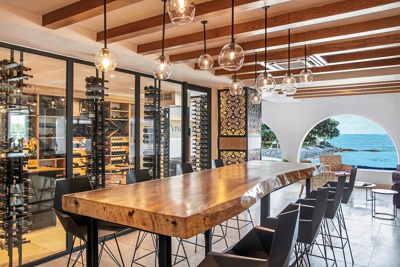 - 121-150 qm, Suite, Erdgeschoss, Strandlage, Meerblick, renoviert (2024), 1 separates Schlafzimmer, 1 separater Wohnraum, Dusche, Badewanne, Bademantel, Haartrockner, Fliesen, Klimaanlage, individuell regulierbar, Minibar, Auffüllung täglich, Safe, TV (Sat-TV, Flachbildschirm), DVD-Player, Espressomaschine, Kaffee/Tee, Terrasse (möbliert), direkter Strandzugang, separater Check-in & Check-out