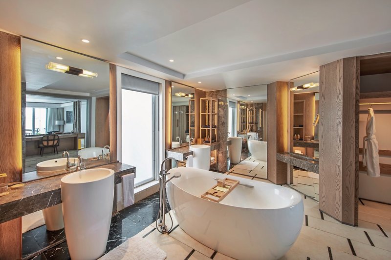 - >200 qm, Suite, Meerblick, renoviert (2024), 2 separate Schlafzimmer, separater Wohnraum, 2 Bäder, Dusche, Badewanne, separates WC, Bademantel, Haartrockner, Fliesen, Klimaanlage, individuell regulierbar, Minibar, Auffüllung täglich, Safe, TV (Sat-TV, Flachbildschirm), DVD-Player, Espressomaschine, Kaffee/Tee, Terrasse (möbliert), Terrasse (möbliert), direkter Strandzugang, separater Check-in & Check-out