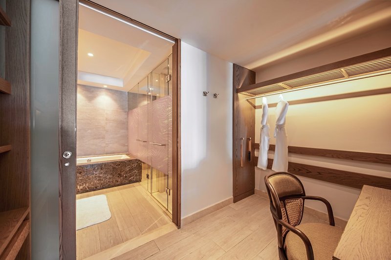 - 101-120 m2, suita, prízemie, poloha na pláži, výhľad na more, zrekonštruované (2024), 2 oddelené spálne, 2 kúpeľne, sprcha, vaňa, župan, fén, dlaždice, klimatizácia, individuálne nastaviteľný, minibar, dopĺňané denne, trezor, 1 TV (satelitná TV, plochá obrazovka), DVD prehrávač, espresso kávovar a odbavený čaj, check-in