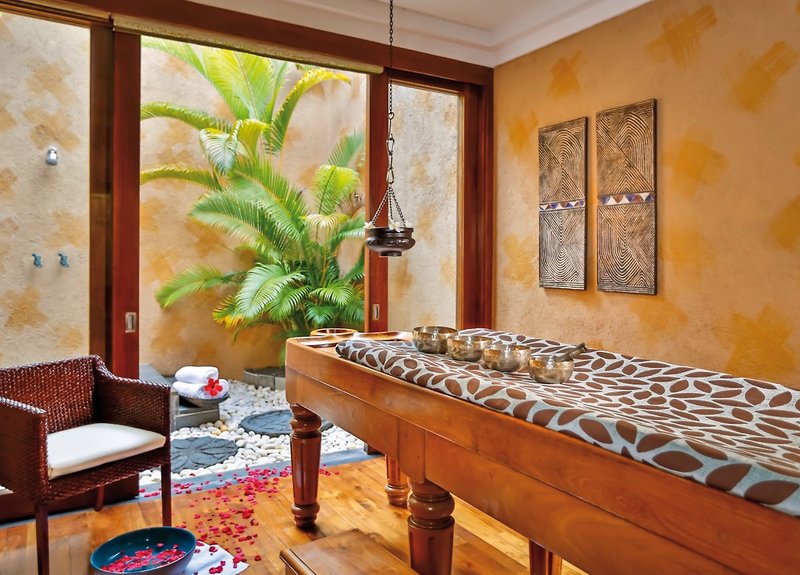 Izby: Pavilóny a vily zdobené svetlými prírodnými tkaninami a farbami vyžarujú teplú a elegantnú atmosféru. Vybavená posteľou s baldachýnom, priestrannou kúpeľňou s mramorovou vaňou zapustenou do podlahy, sprchovacím kútom, sušičom vlasov, županom, Smart TV s Netflix, telefónom, DVD prehrávačom, bezplatným WiFi, dokovacou stanicou pre iPod, minibarom, kávovarom Nespresso, trezorom, klimatizáciou klimatizácia a terasa.
