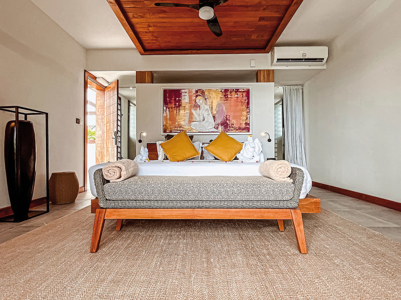- 71-80 qm, Villa, Erdgeschoss, Dusche, Außendusche, separates WC, Bademantel, Badeslipper, Haartrockner, Klimaanlage, Ventilator, Minibar kostenpflichtig, Safe, TV (Sat-TV, Flachbildschirm, Smart-TV), Kaffee/Tee, Terrasse (möbliert), Garten (möbliert), Privatpool, hochwertige Badartikel