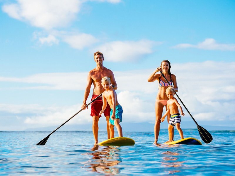 Sport & Fitness: Die Süßwasserpoolanlage mit zum Teil beheizten Innen- und Außenbecken bietet auch einen Kinderbadebereich. Auf der Sonnenterrasse mit Liegestühlen und Schirmen lässt sich der Urlaub genießen. Wohlige Entspannung verspricht der Whirlpool im Badebereich. Wem der Sinn nach Bewegung steht, werden Radfahren/Mountainbiking und Angeln angeboten. Freunde des Wassersports können sich bei Kanufahren, Schnorcheln und Tauchen vergnügen. Entspannung bieten die Angebote im Wellnessbereich, darunter befinden sich ein Spa und eine Sauna. Gegen Gebühr stehen den Gästen Massage-Anwendungen zur Verfügung. Während sich die Eltern entspannen, können Kinder an einem bunten Spiele- und Unterhaltungsprogramm teilnehmen.