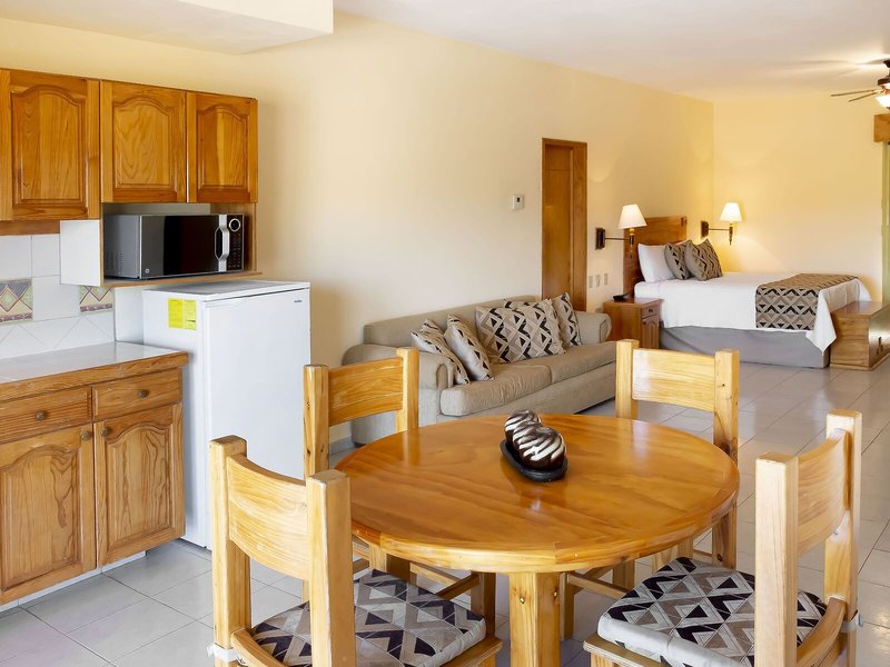 Vaše ubytovanie: Klimatizácia, individuálne nastaviteľné kúrenie a ventilátor zabezpečujú príjemnú teplotu v izbe. Väčšina izieb má balkón alebo terasu. Izby sú vybavené manželskou posteľou a rozkladacou pohovkou. K dispozícii sú samostatné spálne. Prístelky je možné vyžiadať. K dispozícii je aj trezor a písací stôl. Kuchynka je dobre vybavená na vlastné varenie s chladničkou, sporákom, mikrovlnnou rúrou, zariadením na prípravu čaju/kávy a umývačkou riadu. Pre pohodlie hostí je k dispozícii žehliaca súprava. K dispozícii je aj telefón s priamou voľbou, satelitná/káblová TV, rádio a Wi-Fi pripojenie. Kúpeľne sú vybavené sprchovacím kútom, vaňou a vírivkou. K dispozícii je sušič vlasov, župany a telefón. Pre väčšie pohodlie sú k dispozícii toaletné potreby. Bezbariérové izby sú k dispozícii na požiadanie. Hotel ponúka rodinné izby a nefajčiarske izby.
