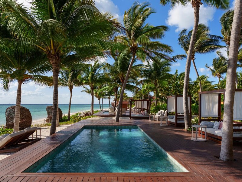 Poloha a okolie: Hotel sa nachádza v bezprostrednej blízkosti očarujúceho a živého mesta Playa del Carmen a je zasadený do krajiny charakterizovanej bielymi piesočnatými plážami a druhým najväčším koralovým útesom na svete. Okolitý ekosystém tvoria piesočné duny, mangrovové lesy a sladkovodné lagúny. Rozmanitosť sa odráža aj v harmonickom dizajne hotela, ktorý kombinuje ázijské a mexické štýlové prvky. Čas transferu z letiska Cancún: približne 75 minút. Čas transferu z letiska Tulum: približne 2,5 hodiny.