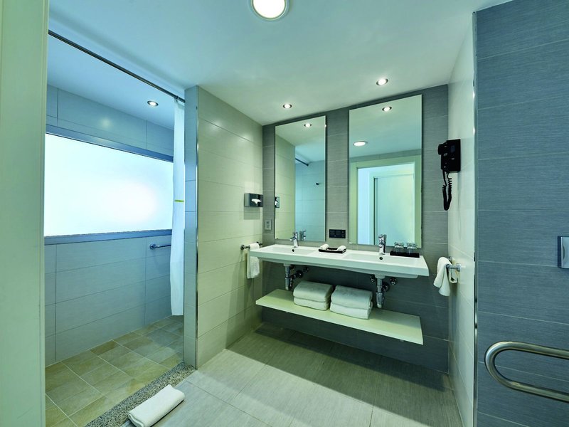 - Double Standard Handicapped Room (DZX4), Doppelzimmer, ca. 36 m², Gesamtanzahl der Räume in diesem Zimmertyp: 1, Aufteilung wie folgt: kombiniertes Wohn-/Schlafzimmer, 2 Einzelbetten (125x200cm), Klimaanlage: zentral gesteuert, Safe: ohne Gebühr, Deckenventilator, Getränkespender, Sofa, Bügeleisen, Bügelbrett, Minibar: ohne Gebühr, Telefon, Internet: WLAN/WiFi: ohne Gebühr, Fernseher: Flatscreen, Sat-TV, Dusche, WC, Föhn, Balkon oder Terrasse: mit Sitzgelegenheit
