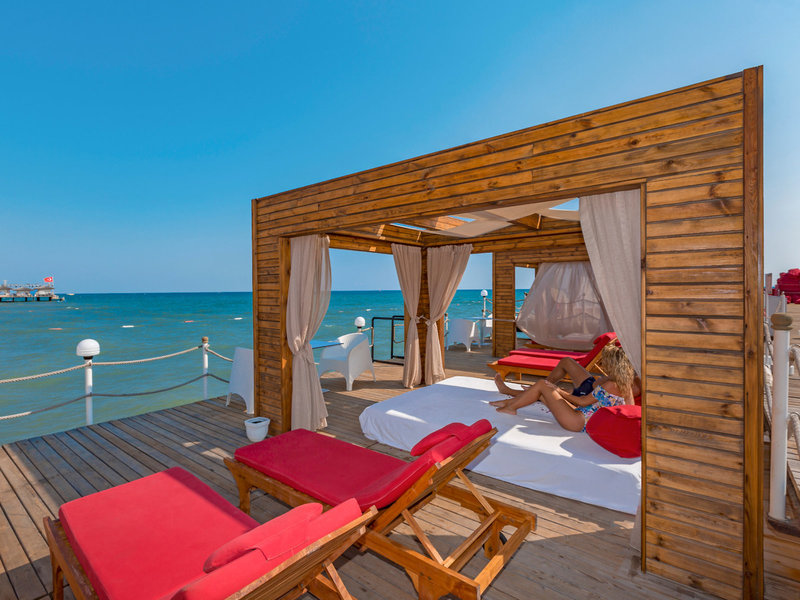- Pláž: piesková, hotelová, balijské postele: za poplatok, pohovky, slnečníky