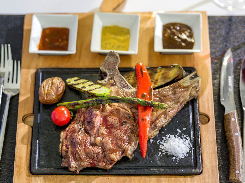 - Špecializovaná reštaurácia Steakhouse (za poplatok): Kuchyňa: grilované jedlá, à la carte, nutná požiadavka a rezervácia, za poplatok, apríl - október; sezónne; Ak to počasie dovolí, niekoľkokrát týždenne, vhodné oblečenie