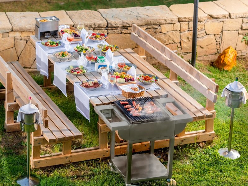 - Reštaurácia BARBEQUE: Kuchyňa: grilované jedlá, à la carte, na vyžiadanie a rezervácia nutná, za poplatok, jún - september; sezónne; v závislosti od počasia, na pláži, vysoká stolička