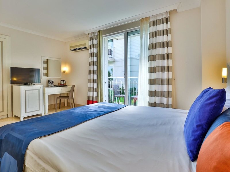 - Standard Room (DZX1), Doppelzimmer, Landseite, Gartenseite, ca. 21 m², Gesamtanzahl der Räume in diesem Zimmertyp: 1, Aufteilung wie folgt: 1 Schlafzimmer, Klimaanlage: individuell regelbar, Fußboden: Fliesenboden, Safe, Minibar: Softdrinks, Wasser, alkoholische Getränke, Telefon, Internet: WLAN/WiFi, Fernseher: im Schlafzimmer, deutsches Programm, Sat-TV, Roomservice: täglich, gegen Gebühr, Barzahlung, Reinigungsservice: täglich, gegen Gebühr, Barzahlung, Dusche, WC, Slipper, Föhn, Balkon: mit Sitzgelegenheit