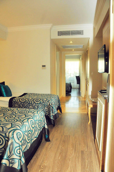 - Standard Room Side Sea View (DZX2), Doppelzimmer, Nichtraucherzimmer, im Hauptgebäude, Meerseite, eingeschränkter Meerblick, ca. 23 - 27 m², 1 Einzelbett (90x200cm), 1 Doppelbett (160x200cm), 1 Schlafsofa (70x180cm), Babybett: ohne Gebühr, Klimaanlage: ohne Gebühr, saisonabhängig; wetterabhängig, zentral gesteuert, Fußboden: Laminat, Parkett, Safe: ohne Gebühr, Sofa, Schreibtisch, Minibar: ohne Gebühr, Softdrinks: ohne Gebühr, Wasser: ohne Gebühr, Minibarauffüllung: täglich, Telefon, Internet: WLAN/WiFi: ohne Gebühr, Fernseher: Flatscreen, im Schlafzimmer, deutsches Programm, Deutsche Welle, Sat-TV, Roomservice: gegen Gebühr, Reinigungsservice: täglich, ohne Gebühr, Dusche, WC, Slipper: ohne Gebühr, Föhn, Balkon: mit Sitzgelegenheit