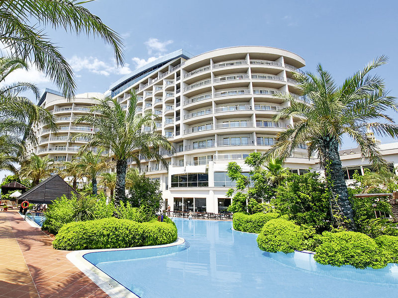 Ausstattung: Komfortables Hotel. Große Gartenanlage, Swimmingpoollandschaft (1 Swimmingpool im November und März beheizt), Adults-only-Pool (ab 16 J.; Mai-Oktober), Wasserrutschen (stdw. von Mai-Oktober), Sonnenterrassen. Liegen, Schirme, Auflagen, Badetücher. Pool-/Snackbar (Mai-Oktober), Amphitheater. Außeneinrichtungen wetterabhängig. Empfangshalle, WLAN in der gesamten Anlage inkl., Aufenthaltsraum, Hauptrestaurant, 5 À-la-carte-Restaurants (teilw. geöffnet von Mai-Oktober, gegen Gebühr). Bars, Diskothek, Geschäfte, Friseur, Minimarkt. Landeskategorie: 5 Sterne, 311 Zimmer, 8 Etagen, 3 Lifte.