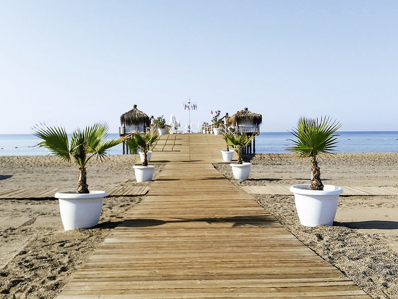 Lage: Direkt am langen, breiten Sandstrand. Das Zentrum von Lara ist ca. 12 km entfernt, bis Antalya ca. 19 km.