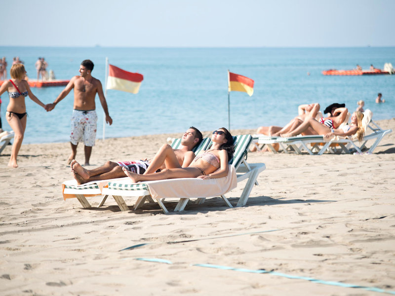 - Pláž: piesok, štrk, dĺžka pláže: cca 100 m, súkromná, ležadlá: zdarma, slnečníky: zdarma