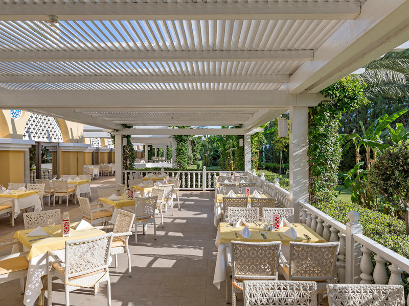 - Špeciálna reštaurácia Lal Grill Reštaurácia (servisný poplatok): Kuchyňa: Turecká, grilované jedlá, à la carte, na vyžiadanie a rezervácia nutná, za poplatok, v závislosti od sezóny; Ak počasie dovolí, niekoľkokrát týždenne 18:30 - 21:30, potrebné vhodné oblečenie