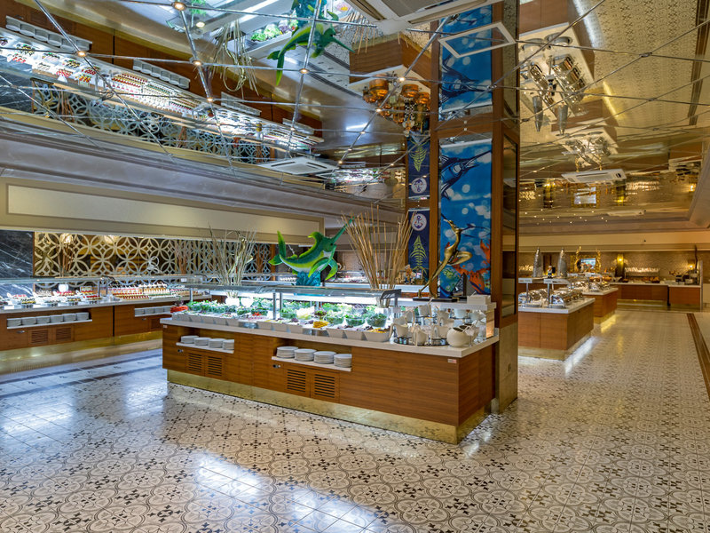 - Špeciálna reštaurácia Deep Blue Restaurant (servisný poplatok): Kuchyňa: Stredomorská, à la carte, nutná požiadavka a rezervácia, za poplatok, v závislosti od sezóny; Ak počasie dovolí, niekoľkokrát týždenne 18:30 - 21:30, potrebné vhodné oblečenie