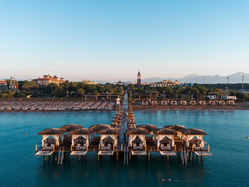 Poloha a okolie Exkluzívny luxusný hotel má fantastickú polohu priamo na jemnej dlhej piesočnatej pláži. Centrum Antalye je vzdialené cca 20 km. Letisko Antalya je vzdialené približne 15 kilometrov.