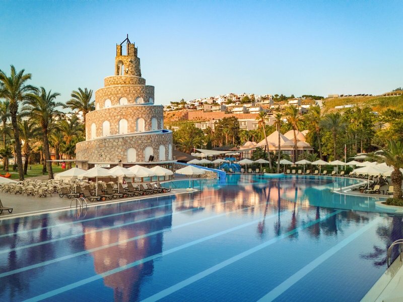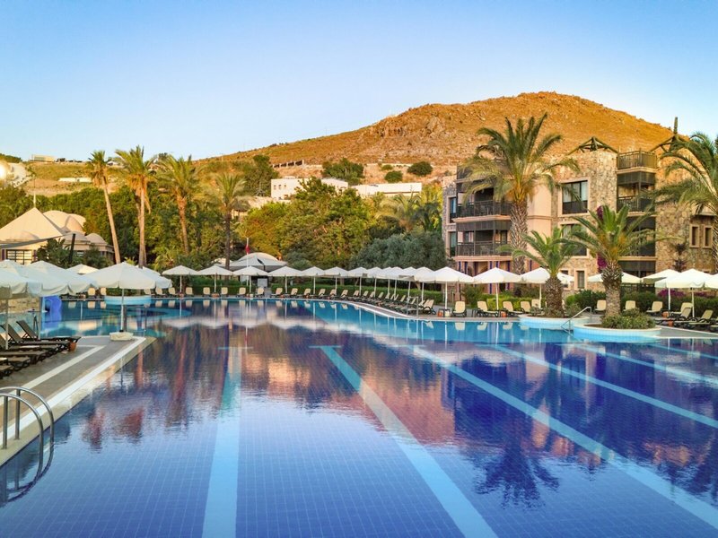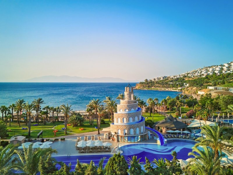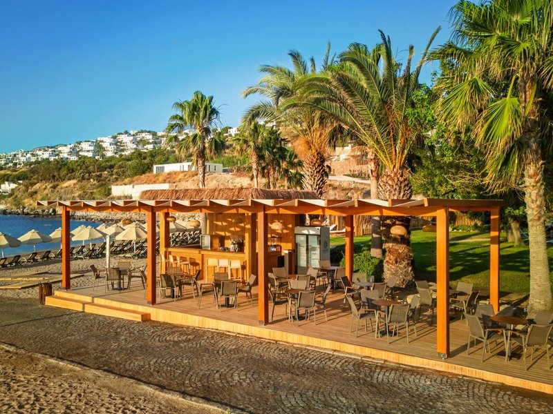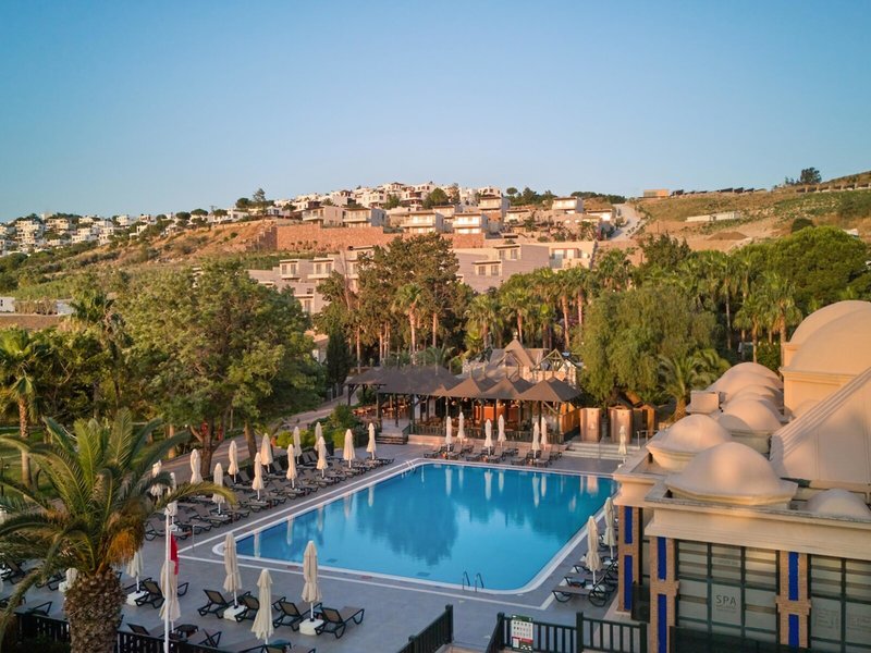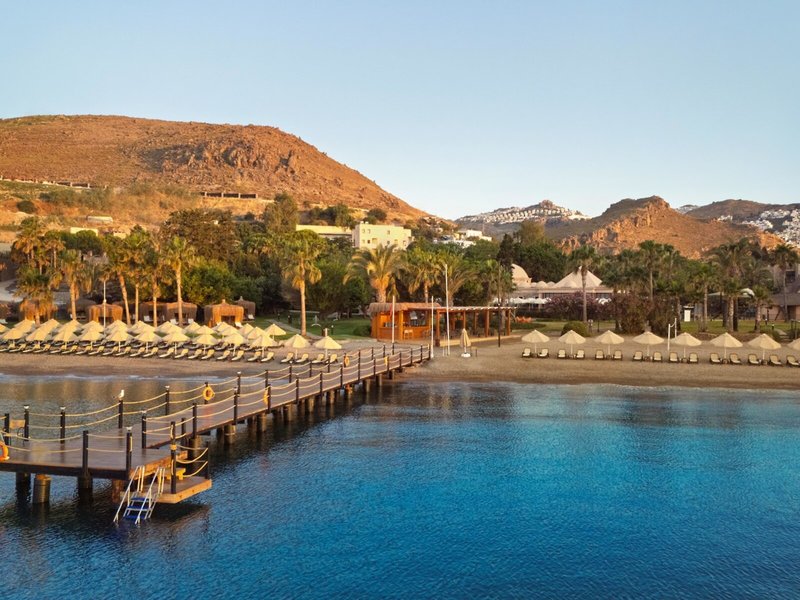 Poloha a okolie: Rezort sa nachádza v Bodrume, priamo na piesočnatej pláži, približne 20 km od centra mesta. Letisko Bodrum-Milas je vzdialené asi 55 km. Okolie ponúka úchvatné zátoky, živé bazáre a pulzujúci nočný život.