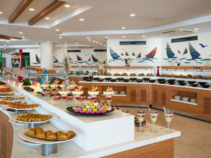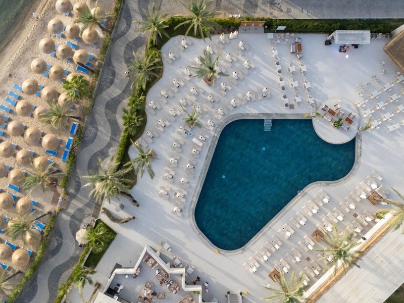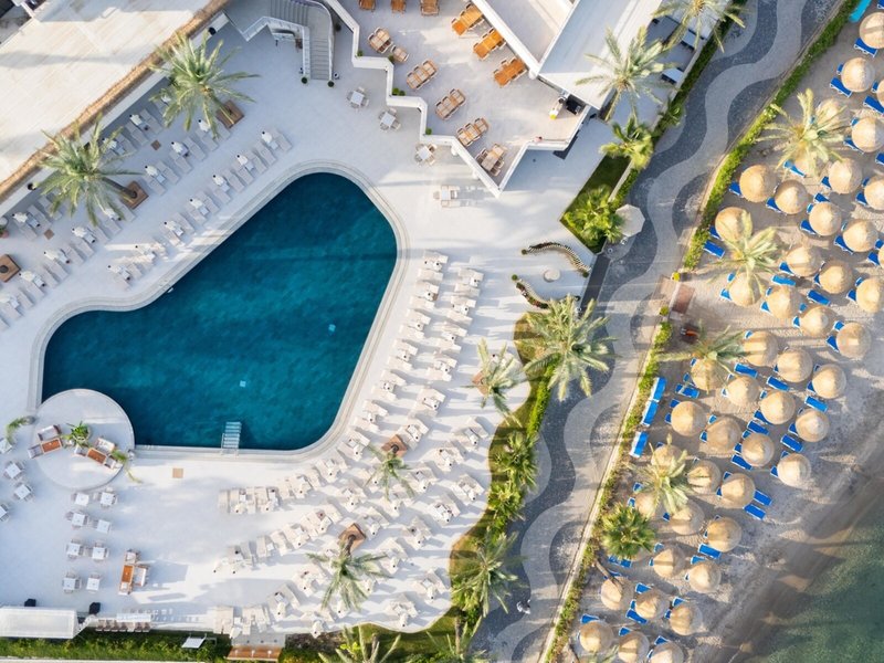 Ausstattung: Hotel der gehobenen Mittelklasse aus Haupthaus und Nebengebäude. Swimmingpoollandschaft mit Sonnenterrasse, Liegen, Schirme, Auflagen am Pool und am Strand. Empfangshalle mit Rezeption, WLAN in den öffentlichen Bereichen, Lobbybar, Sitzgelegenheiten, Hauptrestaurant, 3 À-la-carte-Restaurants, Patisserie, Bars. Landeskategorie: 5 Sterne, 248 Zimmer, 4 Etagen, Lifte.