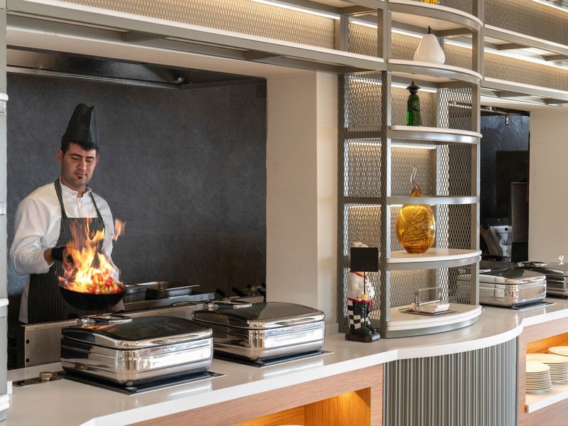 Vybavenie: Hotel vyššej strednej triedy pozostávajúci z hlavnej budovy a prístavby. Bazénová zóna so slnečnou terasou, ležadlami, slnečníkmi a vankúšmi pri bazéne a na pláži. Lobby s recepciou, Wi-Fi vo verejných priestoroch, lobby bar, posedenie, hlavná reštaurácia, 3 reštaurácie à la carte, cukráreň, bary. Oficiálne hodnotenie: 5 hviezdičiek, 248 izieb, 4 poschodia, výťahy.