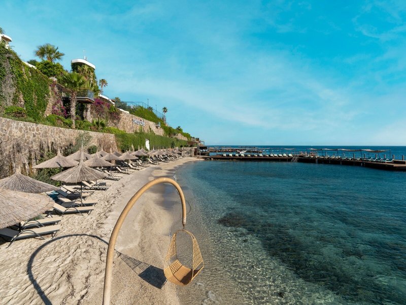 Poloha a okolie: Hotel sa nachádza na idylickom mieste v pokojnom zálive Gündoğan a ponúka relaxačné ubytovanie pri mori. Rušné centrum mesta je vzdialené približne 3 km. Starobylé mesto Bodrum so slávnym hradom je vzdialené približne 20 km. Malebný prístav je vzdialený približne 18 km.
