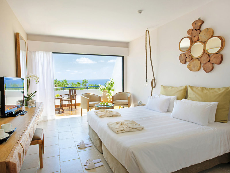 - Superior Sea View Room (DZM4), Doppelzimmer, im Hauptgebäude, Meerblick, Poolblick, 2 Einzelbetten, Babybett, Klimaanlage: individuell regelbar, Heizung: individuell regelbar, Fußboden: Fliesenboden, Safe, Schreibtisch, Kaffee-/Teezubereiter, Minibar: gegen Gebühr, Telefon, Internet: WLAN/WiFi: ohne Gebühr, Fernseher: Flatscreen, im Schlafzimmer, deutsches Programm, Radio, Roomservice: täglich, gegen Gebühr, Reinigungsservice: täglich, ohne Gebühr, Badewanne, WC, Bademantel, Slipper, Föhn, Kosmetikspiegel, Balkon oder Terrasse: mit Sitzgelegenheit