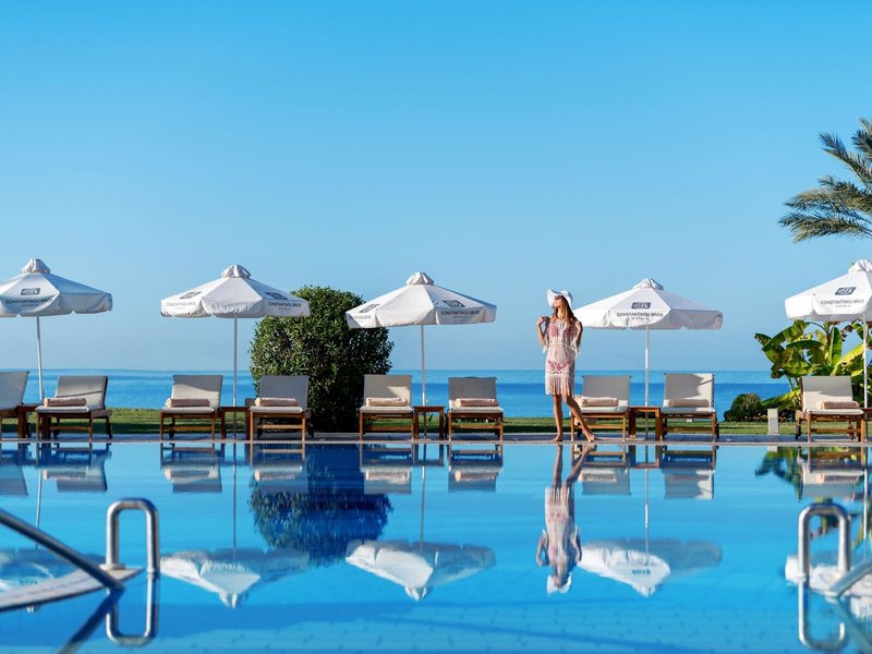 Poloha a okolie Priamo pri menšej zátoke na kúpanie s plážou (piesok, skaly na okraji, odporúčaná obuv na kúpanie) vedie do vody mólo. Do Kato Paphos asi 1,5 km. Autobusová zastávka priamo pred hotelom, okrem iného pravidelné autobusové spojenie do Pafosu. Malebný prístav so stredovekou pevnosťou je vzdialený cca 2 km. Letisko Larnaca je vzdialené približne 135 km. Letisko Paphos je vzdialené približne 16 km.