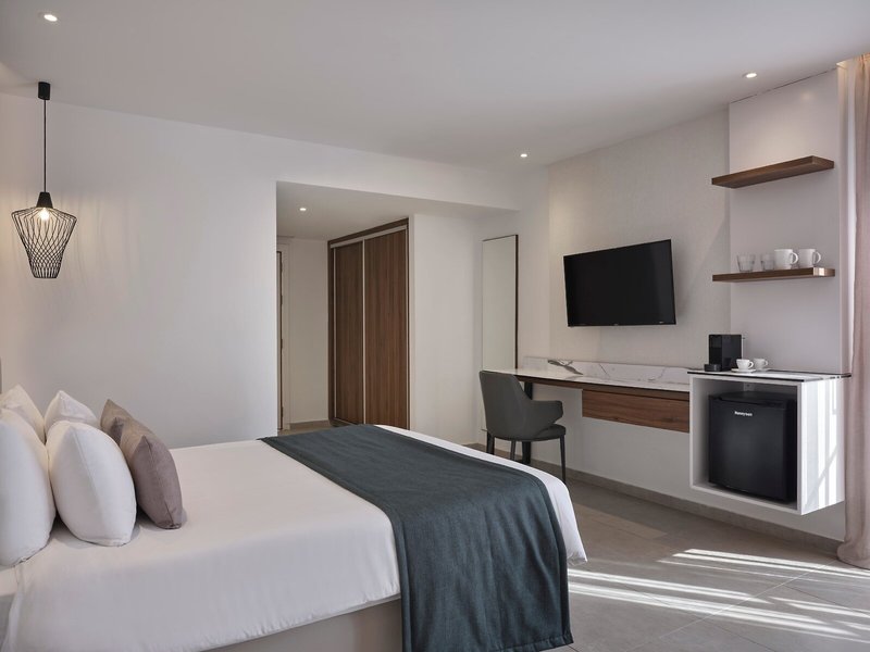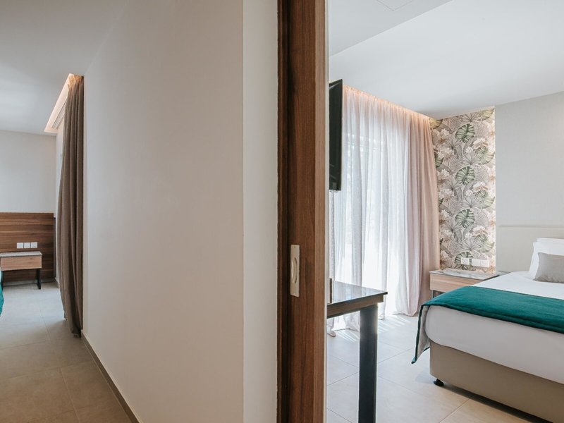 - Family room Sliding doors Inland View (DZL1), Familienzimmer, Nichtraucherzimmer, Landseite, Landblick, ca. 33 - 33 m², letzte Komplettrenovierung 2022, letzte Teilrenovierung 2022, Gesamtanzahl der Räume in diesem Zimmertyp: 1, Aufteilung wie folgt: 1 Schlafzimmer, Babybett, Klimaanlage: ohne Gebühr, individuell regelbar, Fußboden: Fliesenboden, Safe: ohne Gebühr, Schreibtisch, Kühlschrank: ohne Gebühr, Nespressomaschine, Kaffee-/Teezubereiter, Wasserkocher, Minibar: Wasser: ohne Gebühr, bei All Inclusive inklusive, Telefon, Internet: WLAN/WiFi: ohne Gebühr, Fernseher: Flatscreen, im Schlafzimmer, deutsches Programm, Deutsche Welle, Sat-TV, Reinigungsservice: ohne Gebühr, bei All Inclusive inklusive, Dusche, Regendusche, WC, Föhn, Kosmetikspiegel, Balkon: mit Sitzgelegenheit