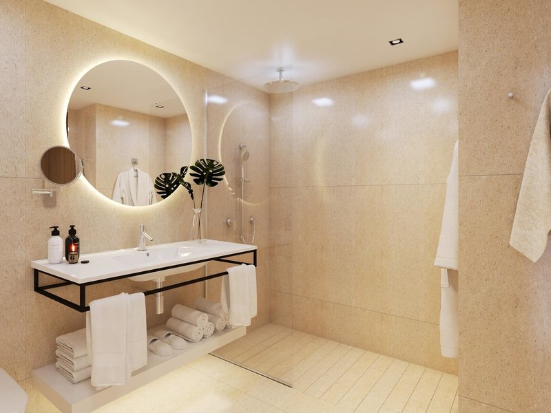 - Die Unterkunftswäscherei sorgt für einen effizienten Verbrauch, um Wasserverschwendung zu vermeiden.