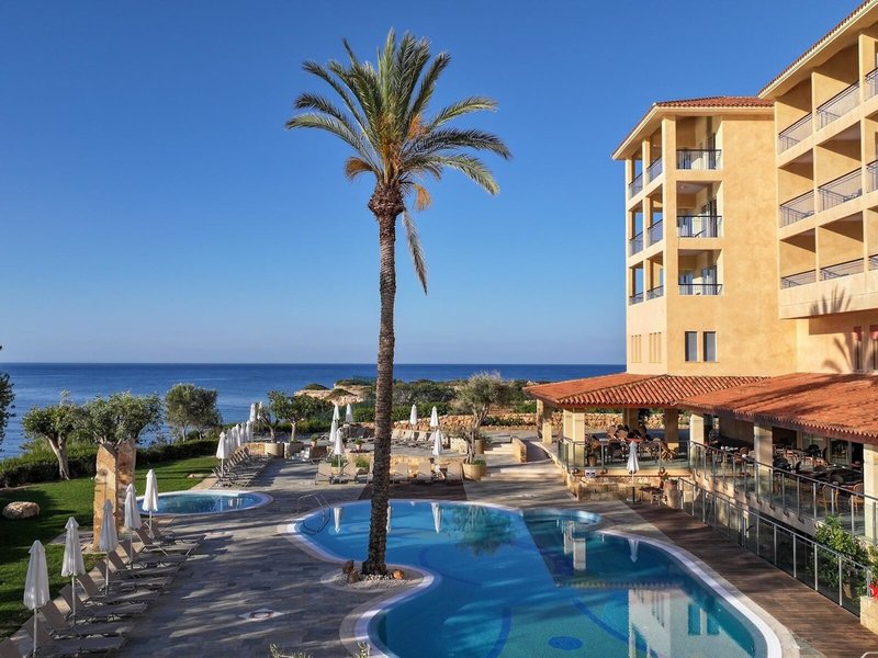 Lage & Umgebung Das Hotel liegt ca.15 Minuten außerhalb der Stadt Paphos. Zum Flughafen Paphos fährt man ca. 35 Minuten und Flughafen Larnaca ca. 90 Minuten. Es liegt auf einer kleinen Halbinsel von etwa 500 m Länge und 200 m Breite und grenzt an die Akamas-Halbinsel, ein von der UNESCO geschütztes Gebiet. Vor dem Hotel liegt die antike Ausgrabungsstätte Maa Palaiocastro.