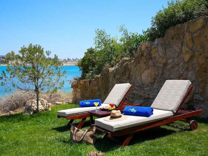 Poloha a okolie Hotel sa nachádza asi 15 minút od mesta Paphos. Cesta autom na letisko Paphos trvá približne 35 minút a letisko Larnaca približne 90 minút. Leží na malom polostrove asi 500 m dlhom a 200 m širokom a hraničí s polostrovom Akamas, chráneným územím UNESCO. Pred hotelom sa nachádza staroveké archeologické nálezisko Maa Palaiocastro.