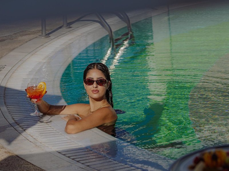 - Výhľad na bazén (DZM1), v hlavnej budove, v prístavbe, výhľad na more, výhľad na bazén, kombinovaná obývacia izba/spálňa, 2 samostatné postele, klimatizácia, dlažba, trezor, chladnička, rýchlovarná kanvica, telefón, Wi-Fi, plochá TV, satelitná TV, upratovacia služba, sprcha, WC, balkón