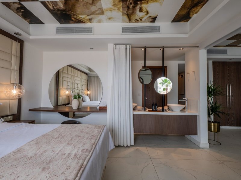 - Suita Executive (SUX2), nefajčiarska izba, minimálny vek v izbe: 17 rokov, novostavba, východná strana, výhľad na bazén, výhľad na nádvorie, cca 50 m², celkový počet izieb v tomto type izby: 1, rozloženie ako nasleduje: kombinovaná obývačka/spálňa, 2 samostatné postele, 1 manželská posteľ, klimatizácia: zdarma, individuálne nastaviteľná, studená, teplá, podlaha: parkety, trezor: zdarma, pohovka, žehlička, žehliaca doska, kuchynský kút, chladnička : zadarmo, mikrovlnná rúra, kávovar, kávovar/čajník, hriankovač, telefón, Internet: WLAN/WiFi: zadarmo, TV: plochá obrazovka, Deutsche Welle, upratovanie: denne, zadarmo, vaňa alebo sprcha, WC, župan: zadarmo, papuče: zadarmo, fén, balkón: s posedením, balkón alebo terasa: s posedením